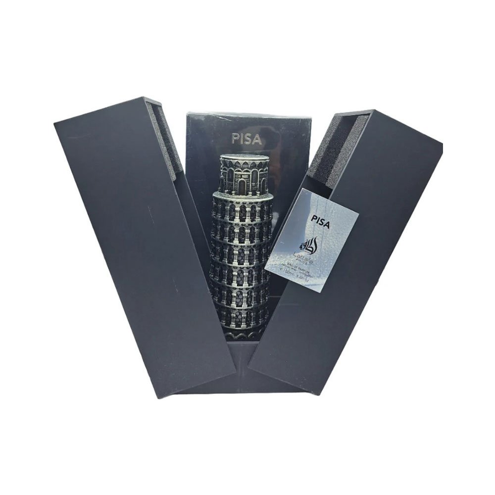 Pisa de Lattafa Perfumes es una fragancia de la familia olfativa Aromática Frutal para Hombres. Esta fragrancia es nueva. Pisa se lanzó en 2024. Las Notas de Salida son mandarina, limón (lima ácida) y bergamota; la Nota de Corazón es cedro; las Notas de Fondo son sándalo y ámbar.