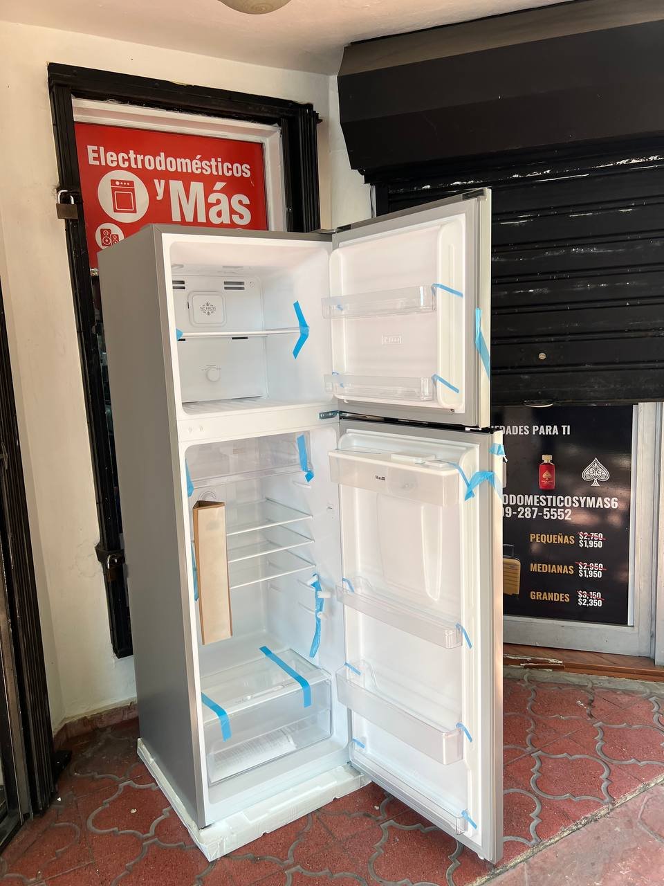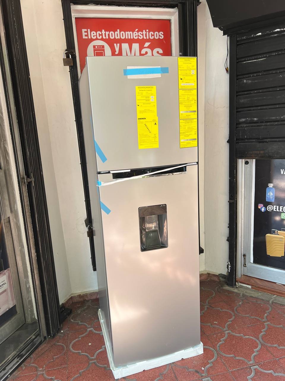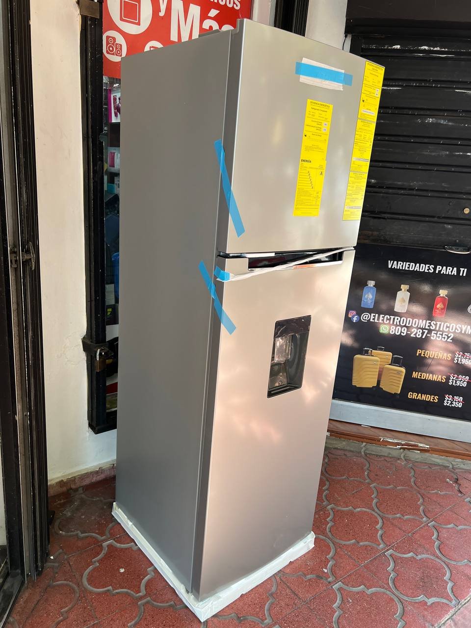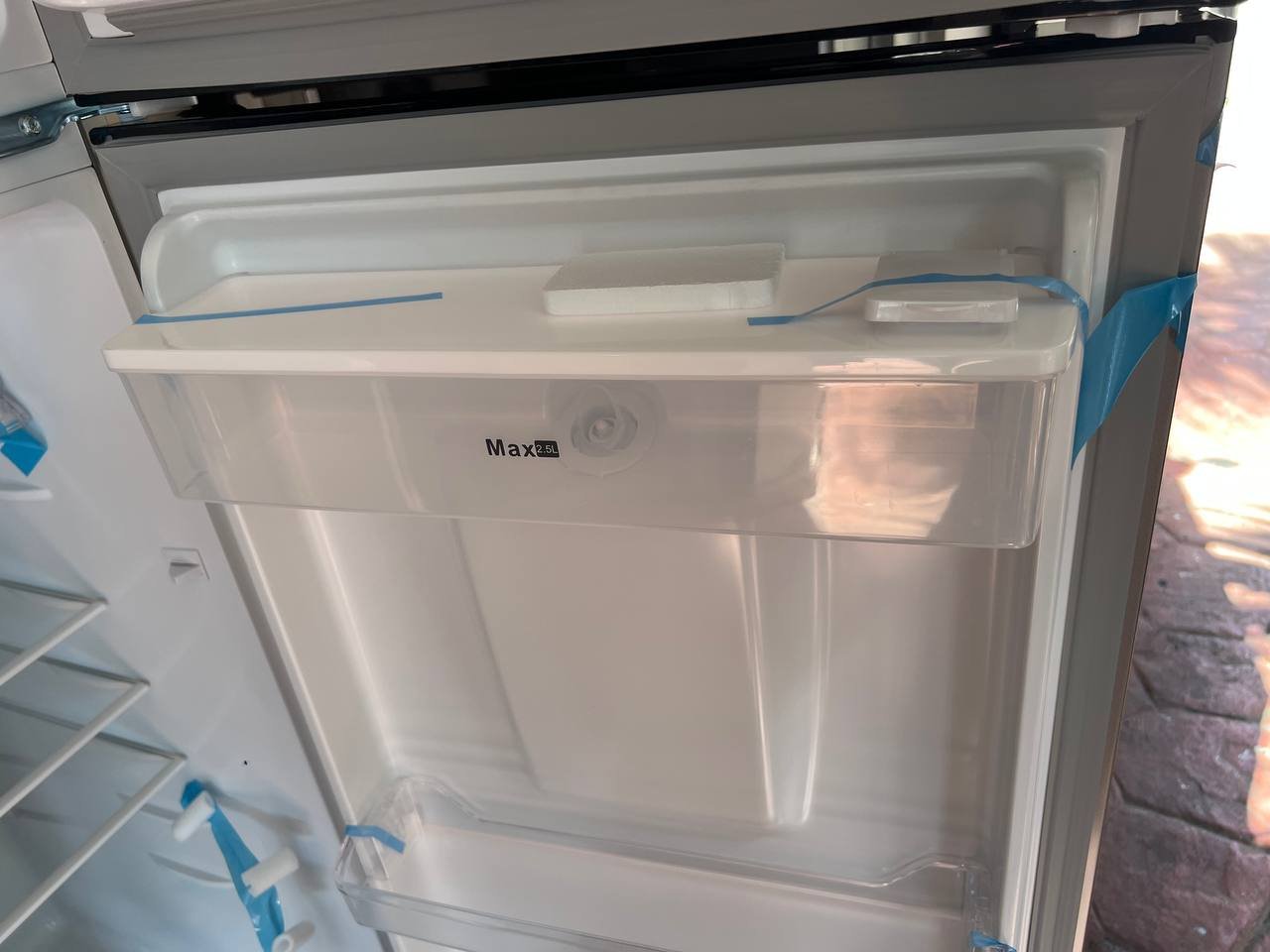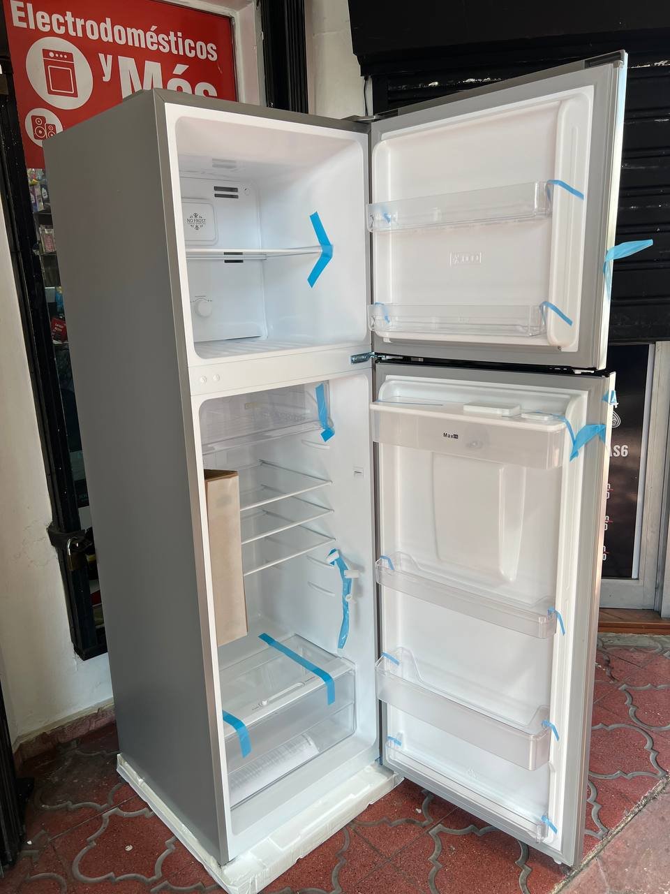 Con dispensador de agua de 2.5Lts de llenado manual, puertas reversibles y cajón de frutas y verduras con control de humedad.